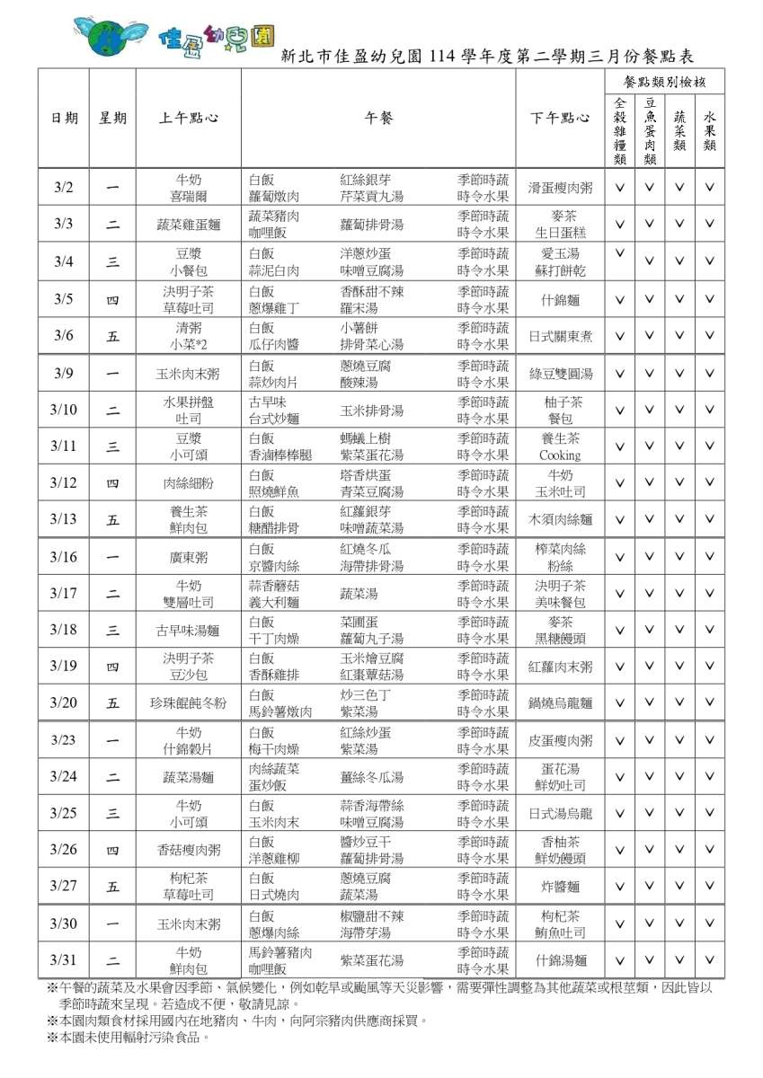 115年3月份菜單